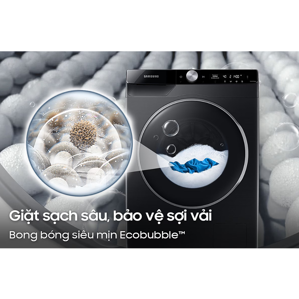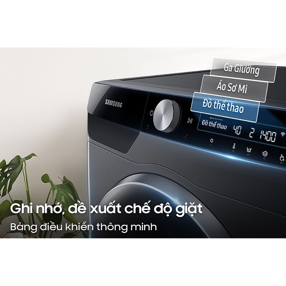 | Công nghệ giặt | AI Wash tối ưu lượng nước giặt xả, VRT Plus ™ giảm rung ồn, QuickDrive giặt xả hiệu quả chỉ trong 39 phút, AI Dispenser tự động cân chỉnh lượng nước giặt, nước xả, Kết nối với điện thoại qua ứng dụng SmartThings, Bảng điều khiển AI control tự động ghi nhớ chế độ giặt, Giặt hơi nước Hygiene Steam, Bong bóng siêu mịn Eco Bubble |