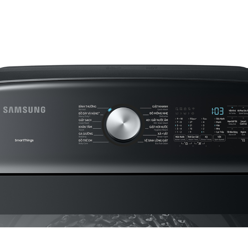 | Các sự lựa chọn thêm | Water Level, Wash Time, Rinse Times, Spin Speed, Air Turbo, Speed Spray, Delay End, Smart Control, Alarm Off, Soak, (Long Key )Child Lock, Smart Check | |
