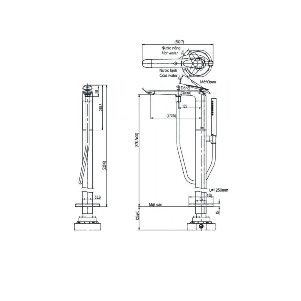 - Tên sản phẩm: Vòi xả bồn nóng lạnh kèm sen tắm ZA (loại đặt sàn)