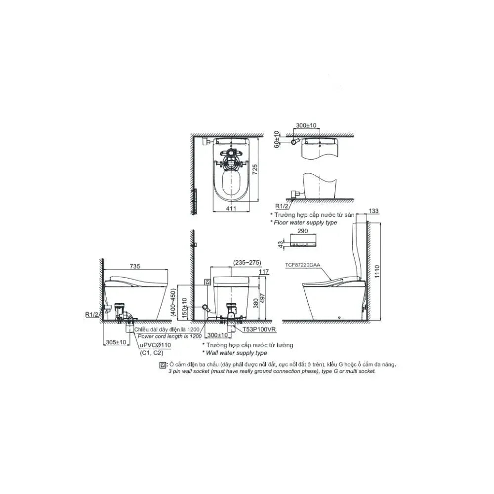 - Power supply: 220~240 (V), 50/60 (Hz)