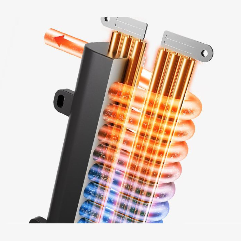 Các bộ phận gia nhiệt và nước được tách biệt hoàn toàn tránh sự ăn mòn của các bộ phận gia nhiệt bằng nước, do đó giảm đáng kể khả năng rò rỉ điện và đảm bảo an toàn cho người sử dụng.